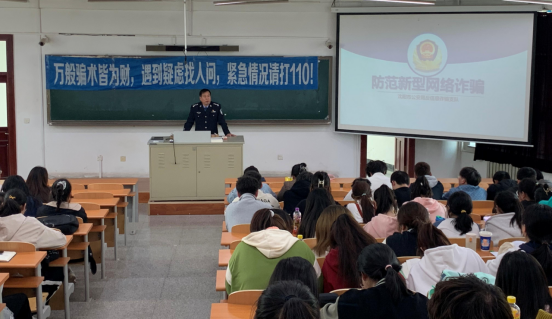 代长岭所长首先向同学们介绍了什么是“新型网络诈骗”,列举了“新型网络诈骗”的常见形式,以及诈骗犯罪分子的惯用手法、作案方式以及电信诈骗的种类和特点,以及识别、防范的方法,并用大量典型真实案例,着重强调个人的银行卡、信用卡不要外借,确保个人信息不要泄露。