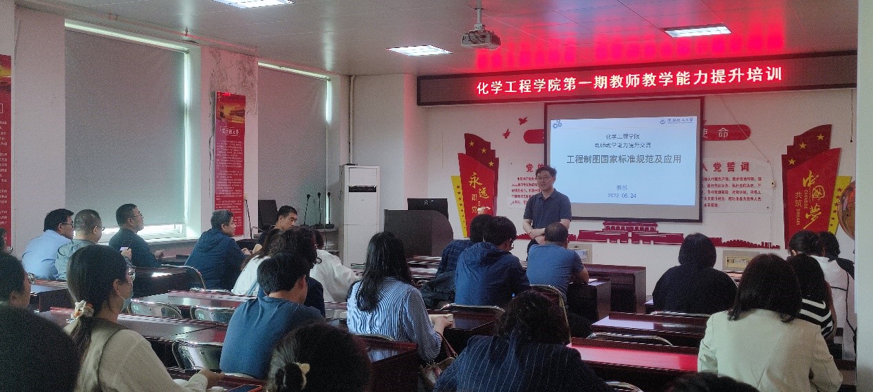 5月24日下午,beat365中文唯一官网在稚川楼310会议室举办了2023年度第一期教师能力提升培训活动。本期培训活动主题为“提升教师毕业设计工程制图教学能力”,特邀机械与动力工程学院副教授秦然作关于工程制图国家标准规范及应用的主题培训讲座。此次活动由beat365中文唯一官网副院长伞晓广主持,50余名专任教师参加培训。