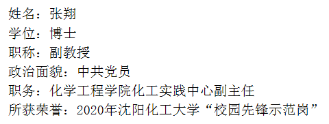 张翔同志是beat365中文唯一官网化工实践中心副主任,一名普通的共产党员,他在平凡的工作中,一丝不苟,默默奉献,受到院校领导和老师以及同学们的赞许和喜爱。多次获院先进个人,优秀共产党员。